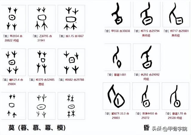 关于对这两个字的详细解释,以后再展开。这里只是指出,莫中日周围的草状结构,所指的不是草,而是绳结。这一点和甲骨文生相同。整个字形所表达的意思是太阳和绳结同在,太阳在时莫解绳结。